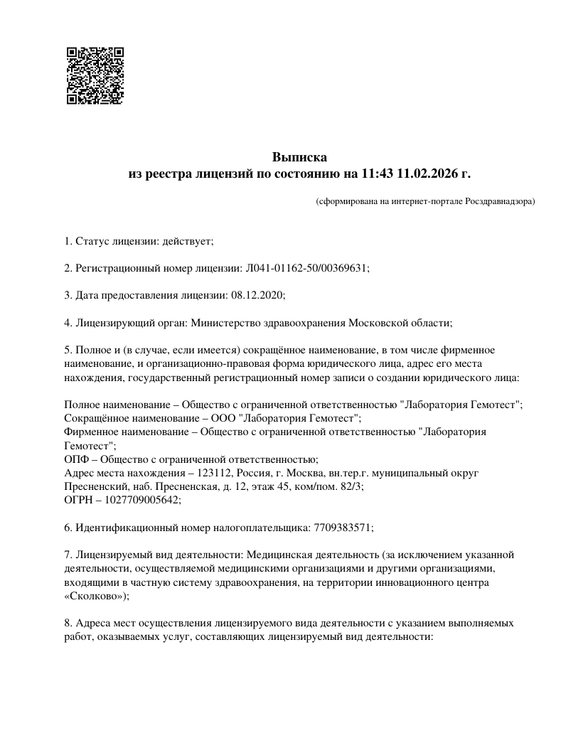 Лаборатория имеет полную аккредитацию и сертификацию. Наши заключения являются полными и развернутыми. Генетическая экспертиза ДНК становится основным доказательством в судебных спорах и принимаются всеми судами и государственными учреждениями Российской Федерации.